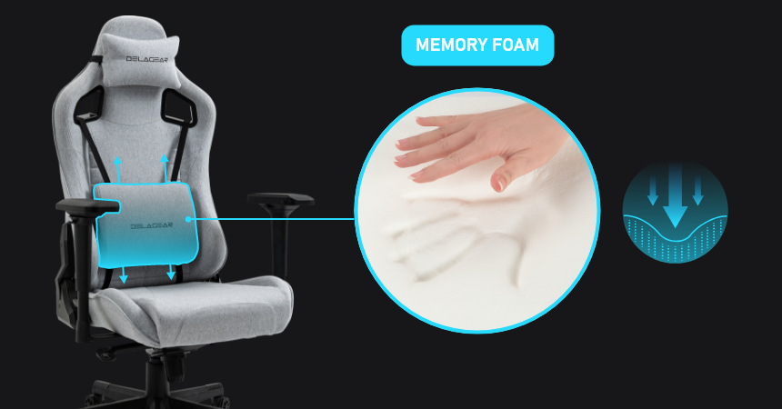 Jakość podparcia odcinka lędźwiowego kręgosłupa to jedna z najważniejszych cech dobrego fotela, gdyż przekłada się bezpośrednio na komfort siedzenia przez wiele godzin i tego, jak bardzo odczuje to nasz kręgosłup. Za tę jakość odpowiada w modelu G 808 duża poduszka pod odcinek lędźwiowy. Poduszka została wypełniona pianką MEMORY FOAM i pod wpływem nacisku i ciepła optymalnie dopasuje się do Twoich pleców. Możesz dowolnie regulować jej wysokość. Zalecana szczególnie dla niskich odchyleń oparcia (standardowa pozycja przy biurku), natomiast przy większym odchyleniu oparcia do tyłu można ją odczepić.