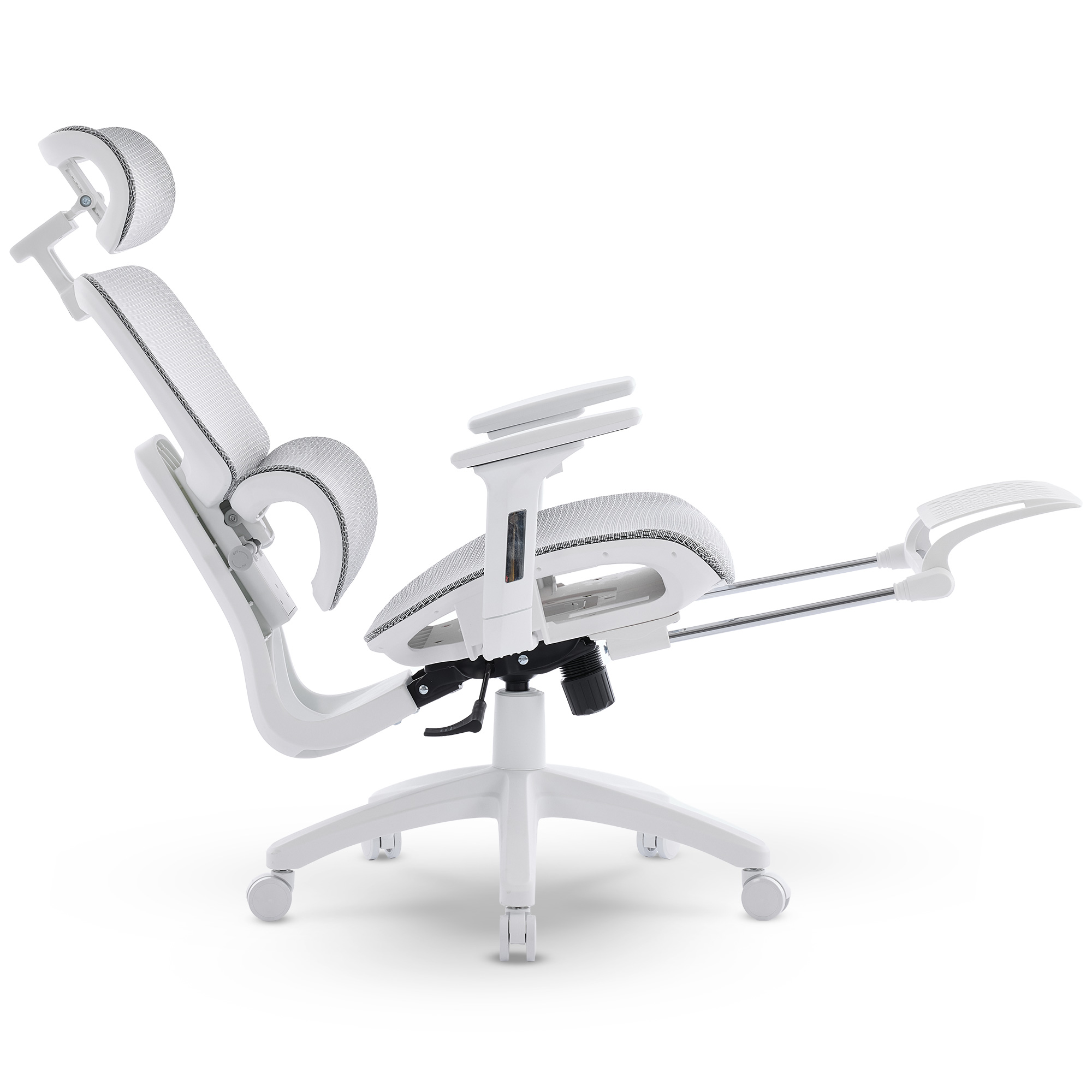 Tylna oraz dolna część fotela została wykonana z przepuszczalnej powietrze tkaniny sieciowej MESH, która gwarantuje nieprzerwaną wentylację ciała. To innowacyjne rozwiązanie efektywnie zapobiega poceniu się pleców i nóg, podnosząc komfort przez cały dzień roboczy. Elastyczny materiał automatycznie dostosowuje się do konturu sylwetki użytkownika, nie tracąc przy tym właściwości podtrzymujących.